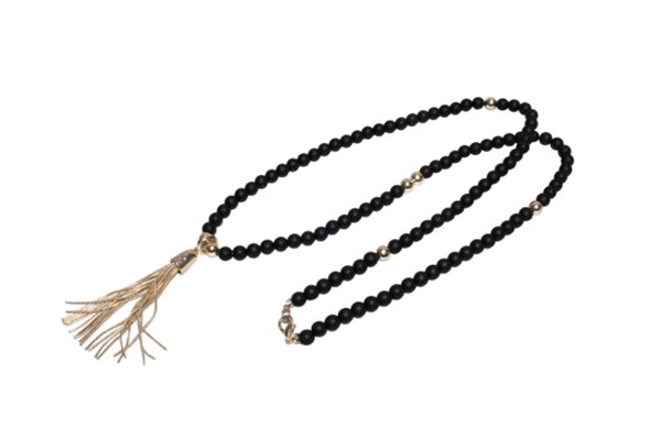Experience Effortless Style with NECKLACE-BEADS-TASSEL-BLACK 90CM (35 Inch) LONG